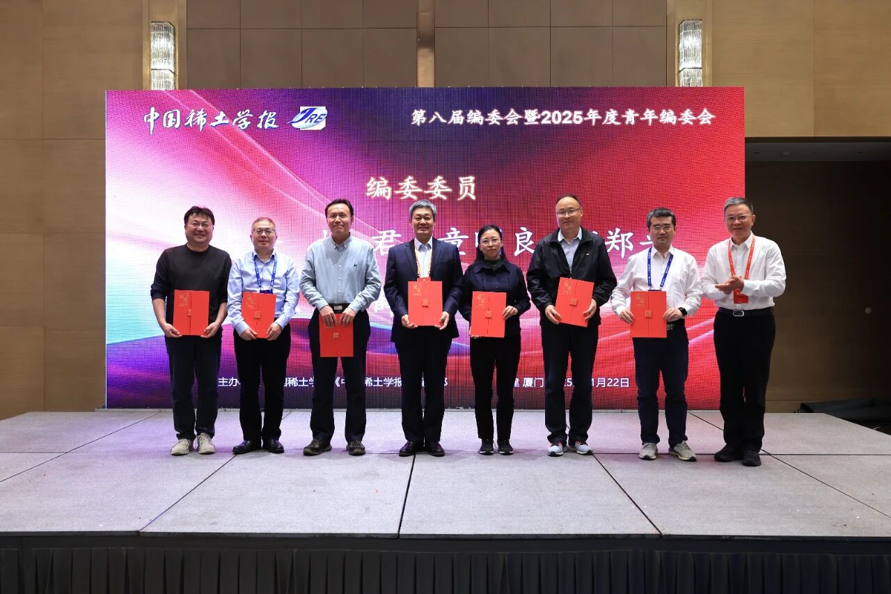 11月22日,《稀土学报》(中、英文版)(简称《学报》)第八届编委会暨2025年度青年编委会会议在厦门召开。中国科学院院士、兰州大学原校长、北京大学博雅讲席教授、《学报》主编严纯华,中国工程院院士、中国有研首席科学家、《学报》常务副主编黄小卫,中国稀土学会理事长、《学报》主任委员李波,中国稀土学会副理事长兼秘书长、《学报》副主任委员杨占峰,中国科学院院士、《学报》学术顾问沈保根,中国工程院院士、《学报》学术顾问姜涛,《学报》第八届编委会委员、青年编委以及编辑部成员等百余人齐聚一堂,共同见证新一届编委会成立,共商《学报》高质量发展大计,全力推进稀土强国建设。